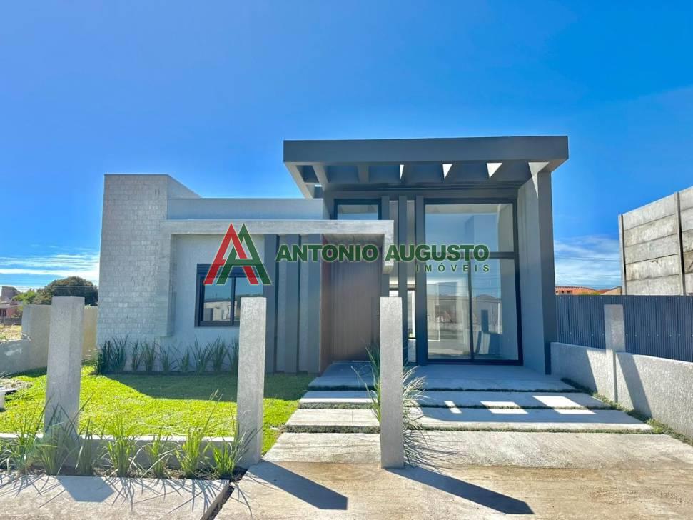 Casa nova na praia de Noiva do Mar, composta por 03 domitórios (sendo 01 suíte), banheiro social, living para 02 ambientes com lareira, cozinha do tipo americana com espaço gourmet e churrasqueira, área de serviço tipo lavanderia fechada, abrigo coberto para carros.