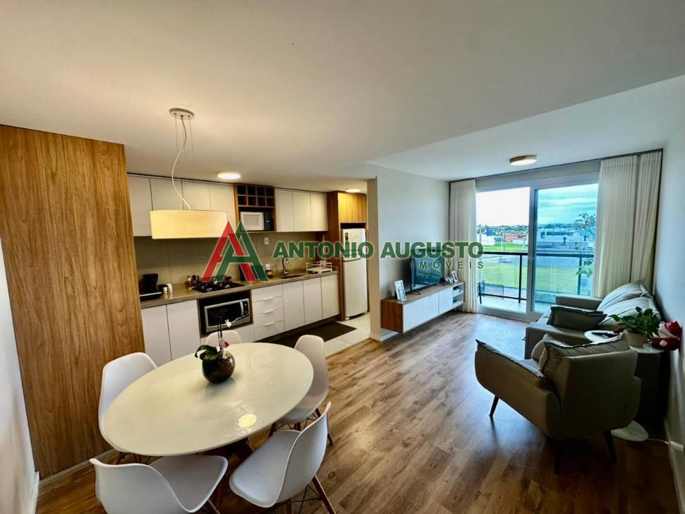 Apartamento novo, mobiliado, composto de 2 dormitórios (1 suite), banho social, living 2 ambientes, cozinha integrada com churrasqueira, lavanderia, sacada, box para carro, edificio completo, com porteiro eletronico, piscina adulta e infantil, salão de festas, academia, espaço kids, 2 elevadores, baixo custo condominial! Área do apto 67m² e área do box 12m² privativos .