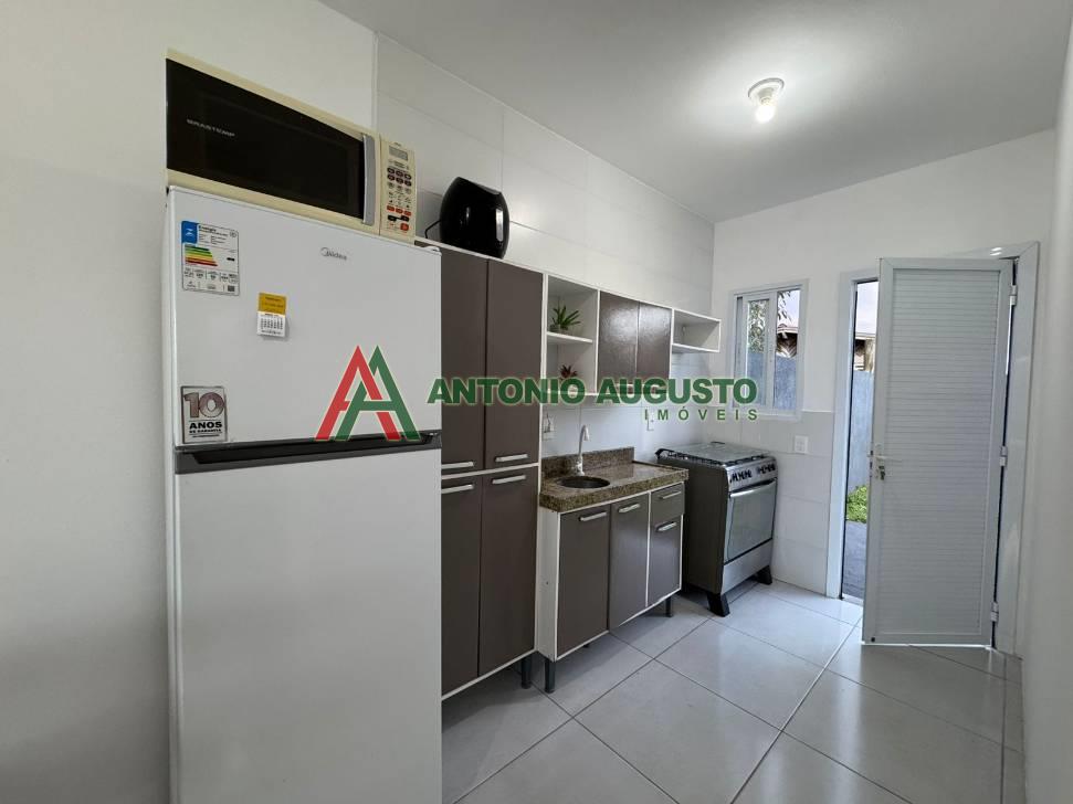Casa geminada mobiliada, composta por 02 dormitórios, banheiro social, living para 02 ambientes, cozinha do tipo americana, vaga para carros.