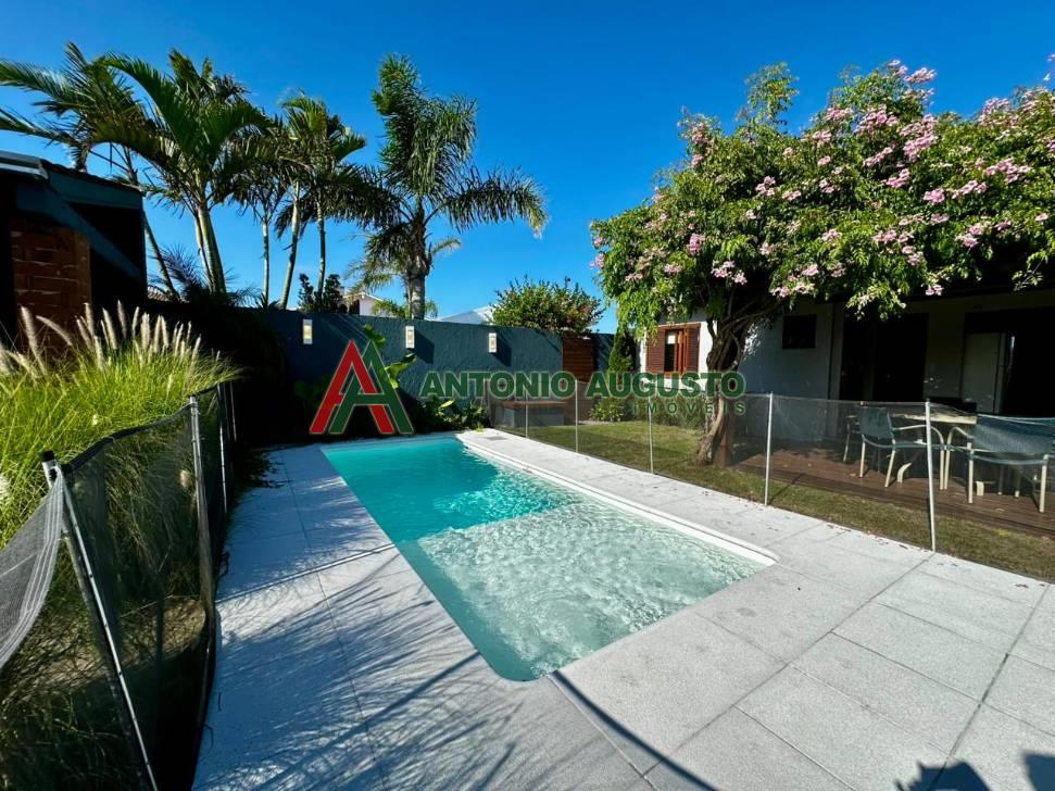 Casa em Atlântida, composta de 4 dormitórios (2 suites), banho social, living com lareira, sala de jantar, cozinha integrada com espaço gourmet, forno de pizza, garagem fechada, pátio com privacidade, piscina, quiosque com churrasqueira, paisagismo, espaço com lareira externa, mobiliada e equipada, excelente imóvel para moradia e veraneio!