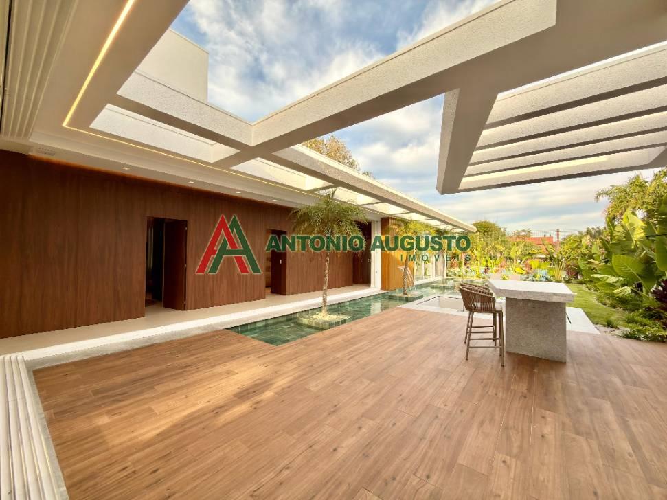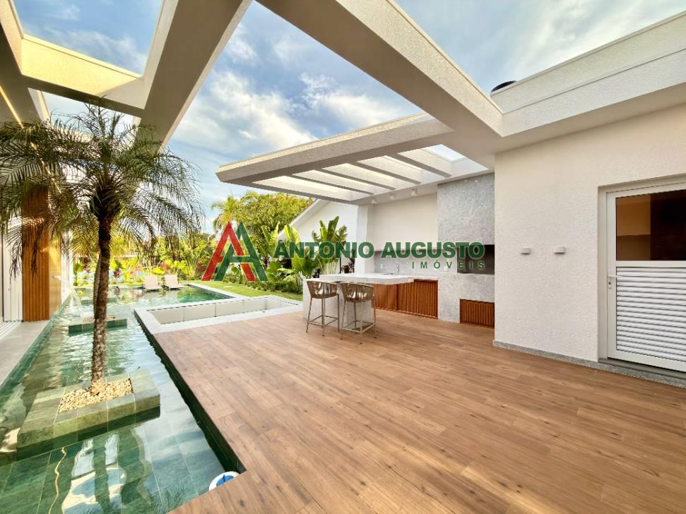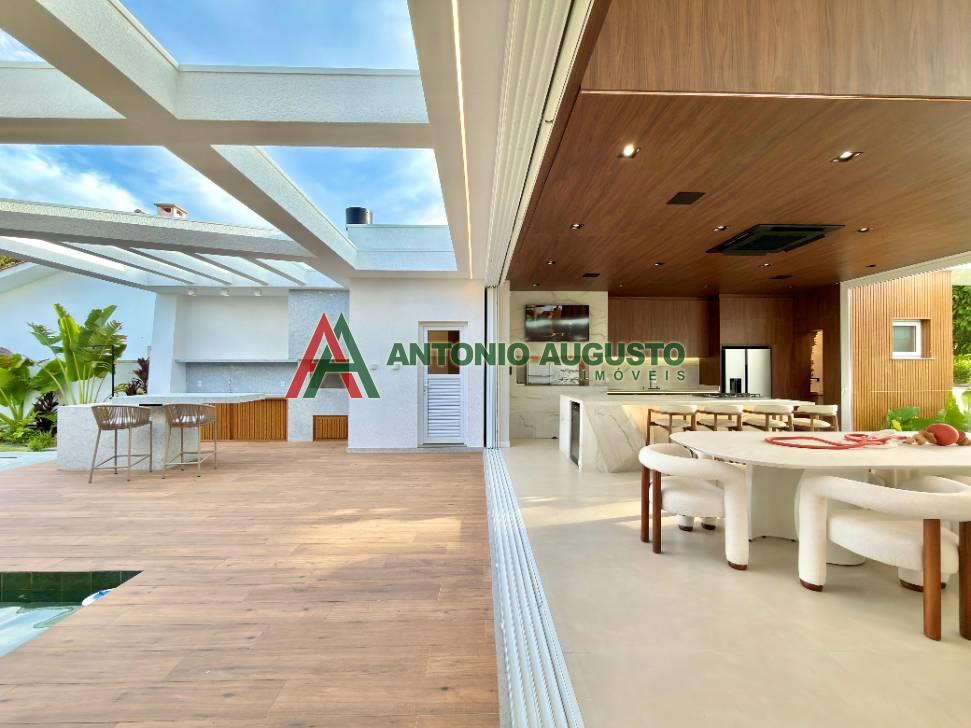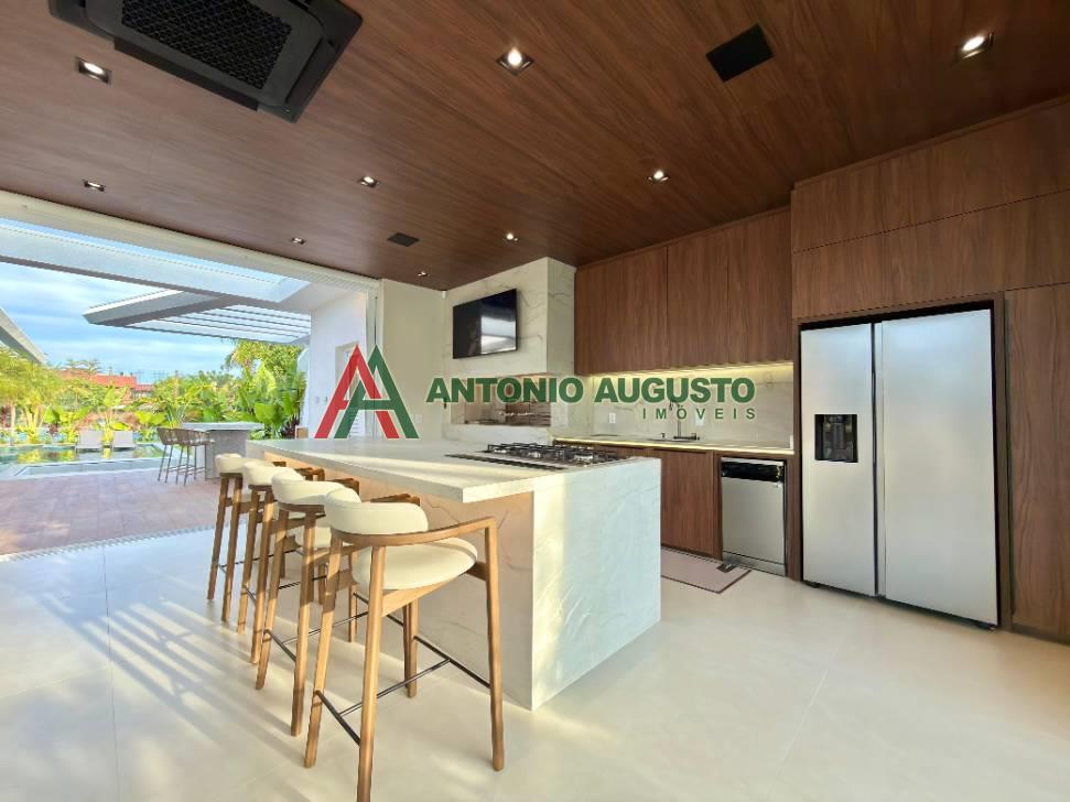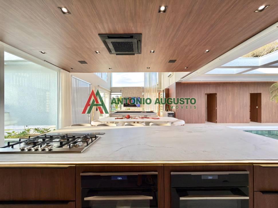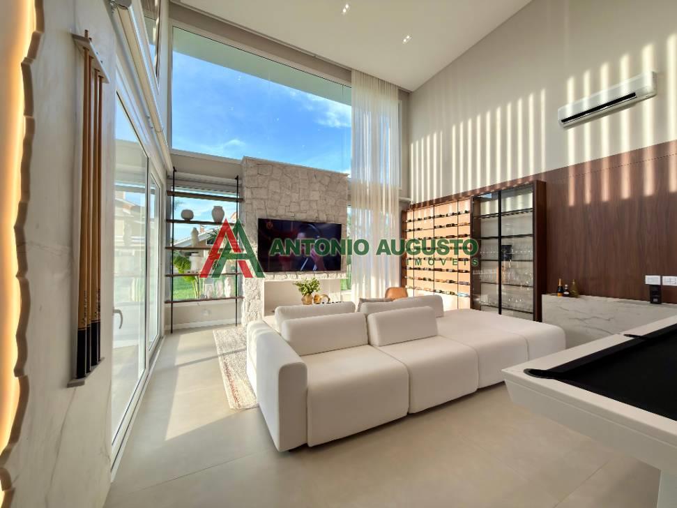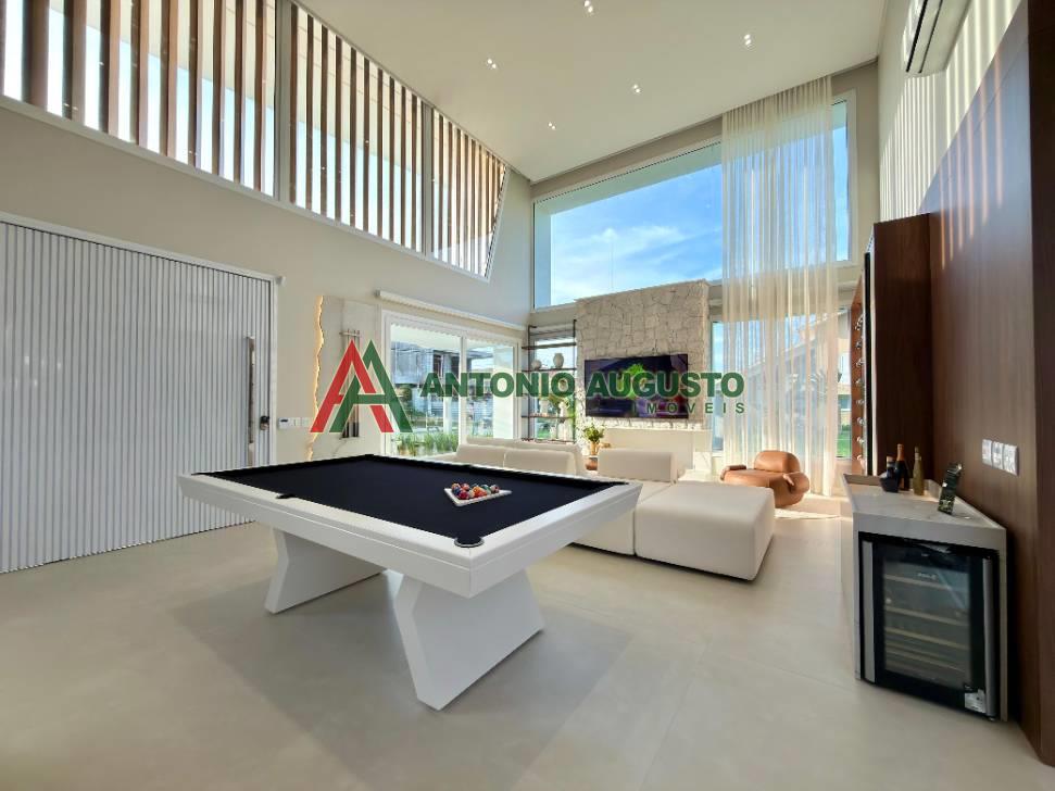 Belíssima residência, 305m² de Área construída e 589 m² de terreno, estilo moderno, mobiliada e decorada, composta por 04 suítes individuais sendo 1 master com 27m² com closet e banheira de imersão com vista contemplativa para o espelho d’água, Living com pé direito alto, automação completa por protocolo Zigbee - Alexa som ambiente gourmet principal, depurador de cozinha embutido, persianas automatizadas, pedras da cozinha em Mont Blanc escovado, sofá com regulagem motorizada de encosto, ar condicionados e Televisores Samsung, projeto luminotécnico com telas tensionadas. Piscina em concreto.