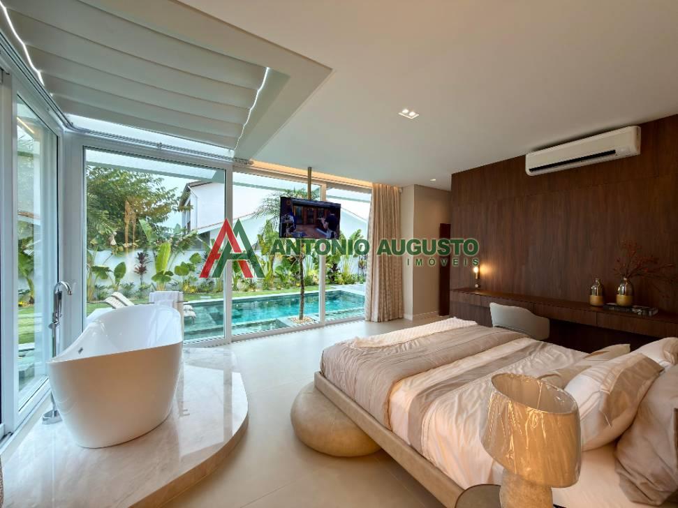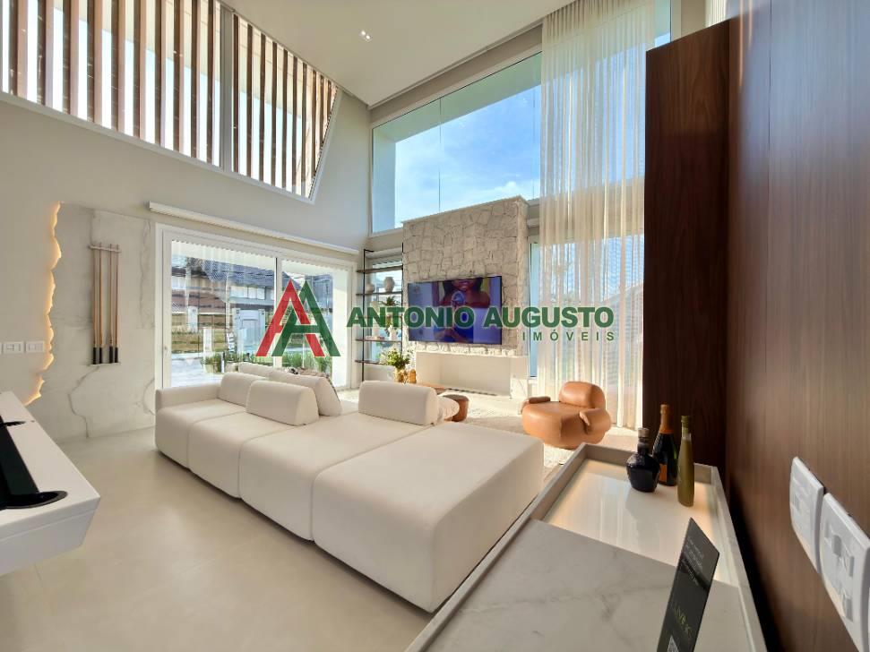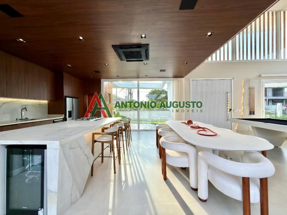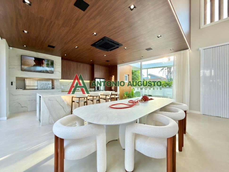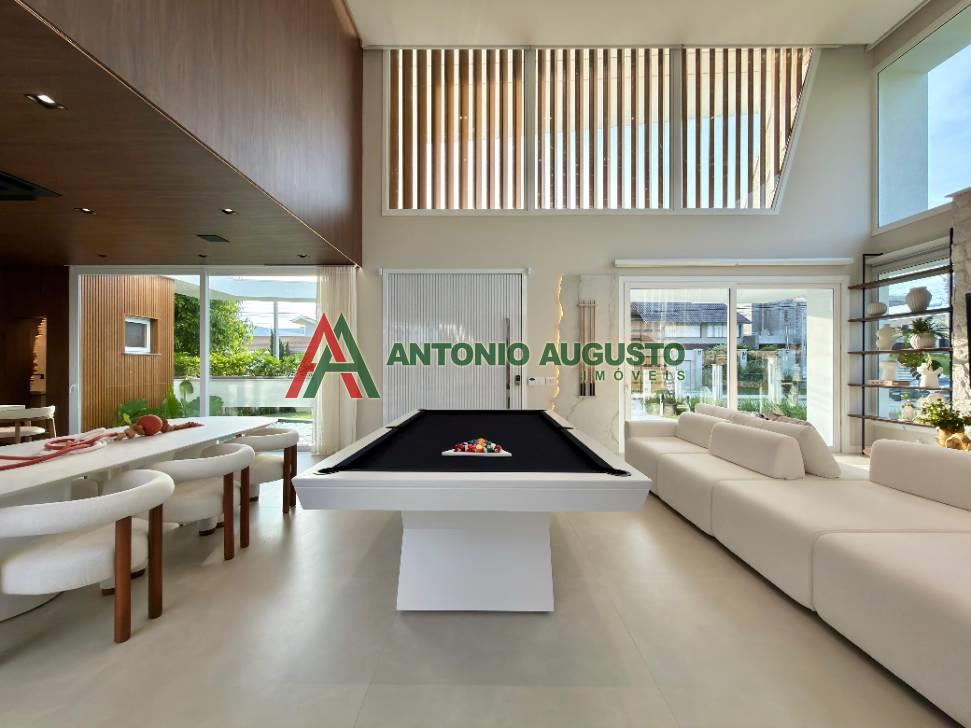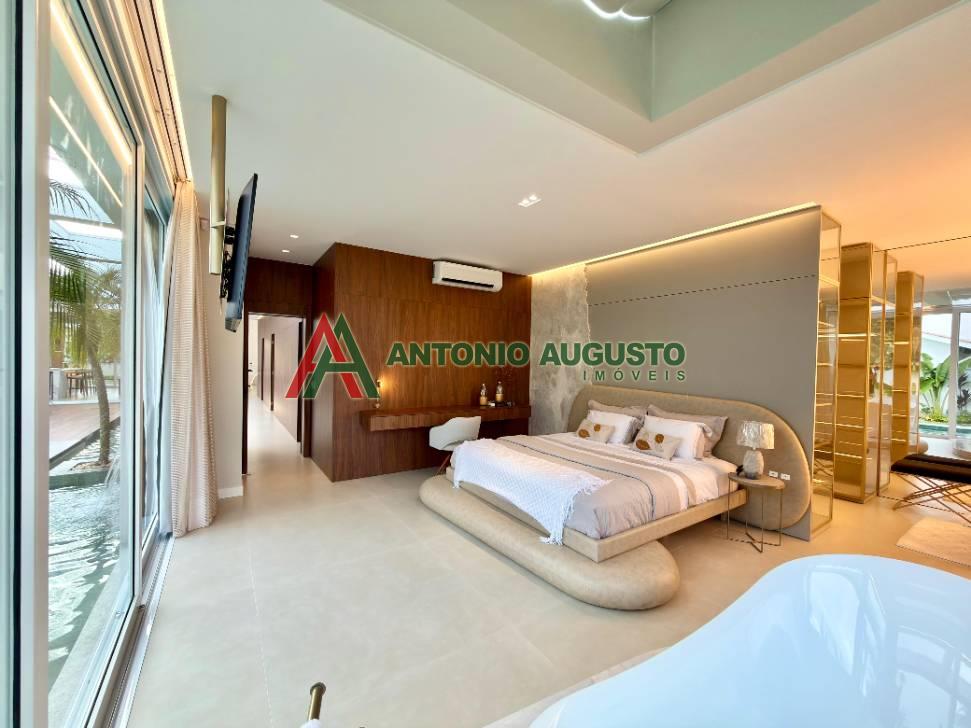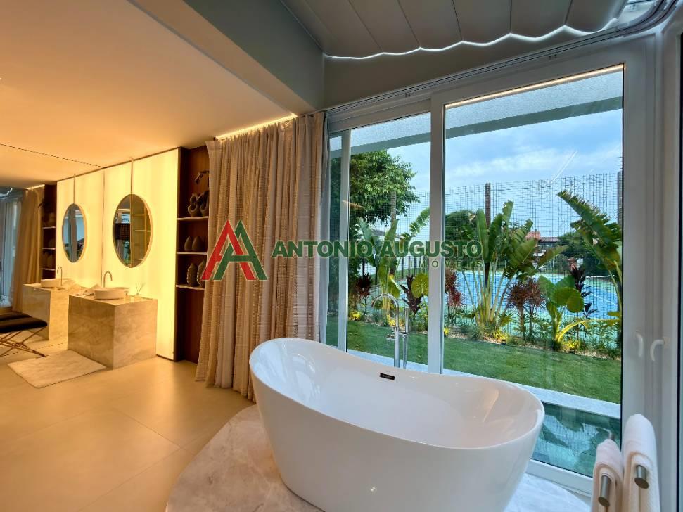 Belíssima residência, 305m² de Área construída e 589 m² de terreno, estilo moderno, mobiliada e decorada, composta por 04 suítes individuais sendo 1 master com 27m² com closet e banheira de imersão com vista contemplativa para o espelho d’água, Living com pé direito alto, automação completa por protocolo Zigbee - Alexa som ambiente gourmet principal, depurador de cozinha embutido, persianas automatizadas, pedras da cozinha em Mont Blanc escovado, sofá com regulagem motorizada de encosto, ar condicionados e Televisores Samsung, projeto luminotécnico com telas tensionadas. Piscina em concreto.