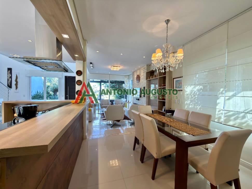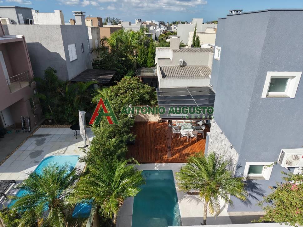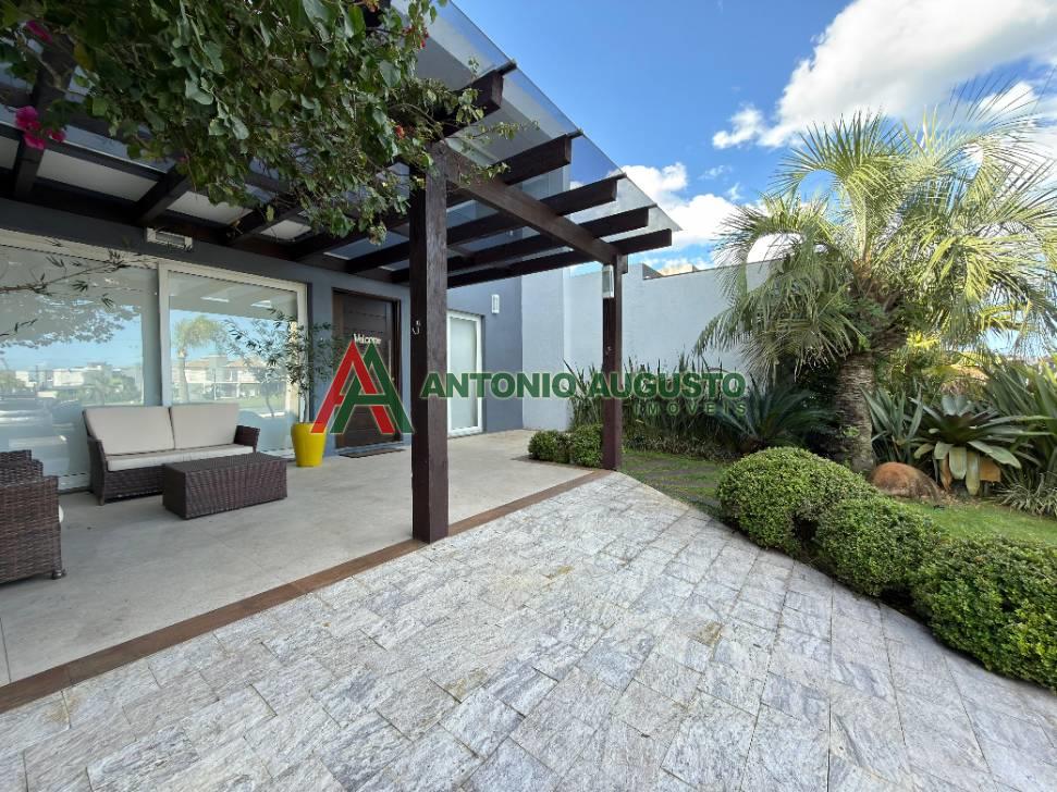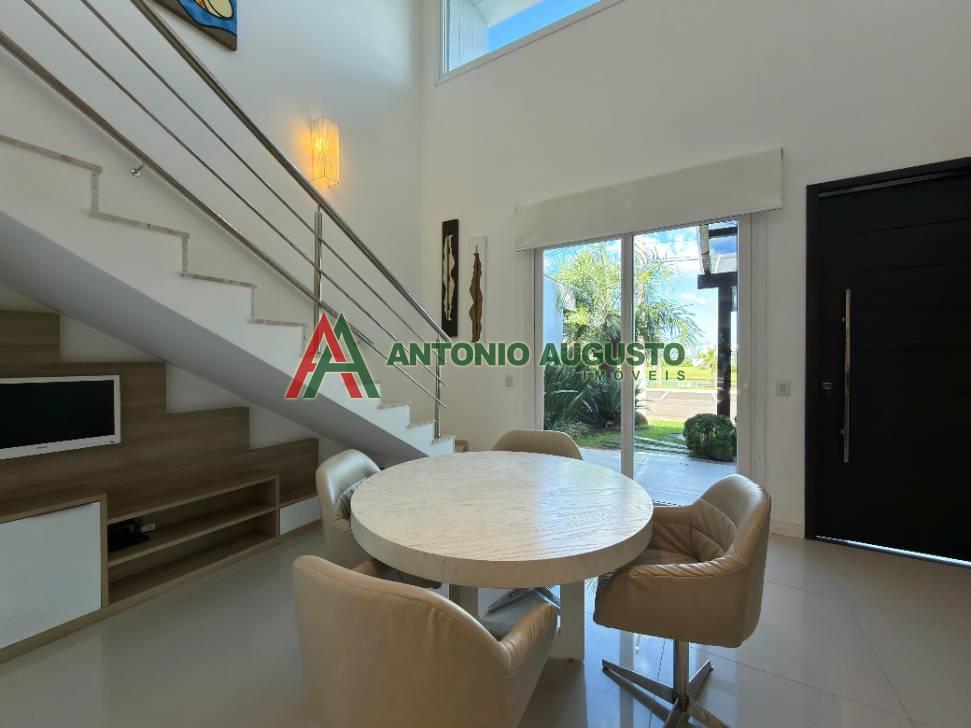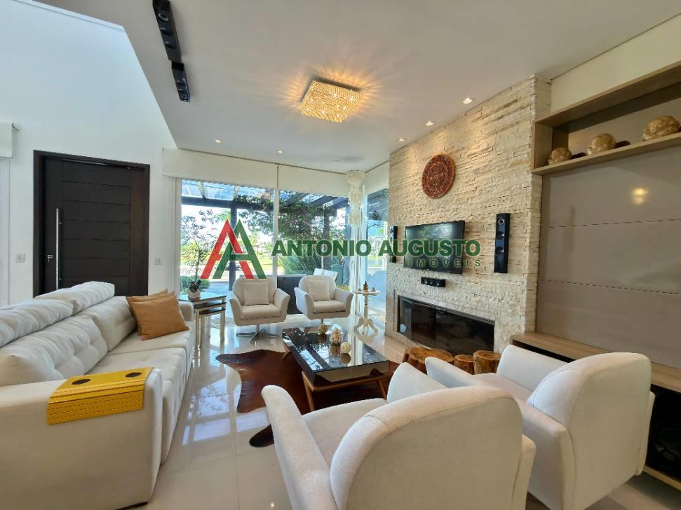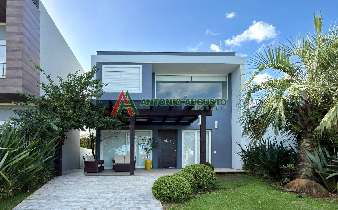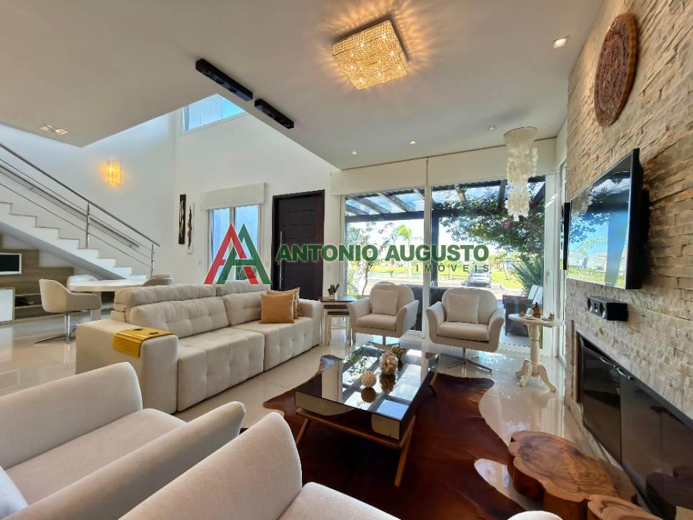 Sobrado com 210m² frente Lago, IPTU 2026 PAGO, composto por 03 Suítes amplas, Completamente mobiliado e decorado, climatizado, Living integrado, lareira a lenha e lavabo, cozinha do tipo americana com espaço gourmet e churrasqueira, excelente iluminação natural, Piscina com Aquecimento, sistema de irrigação no jardim, área externa na frente e nos fundos da casa, condomínio com Infra completa e Portaria 24h.