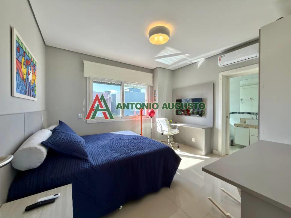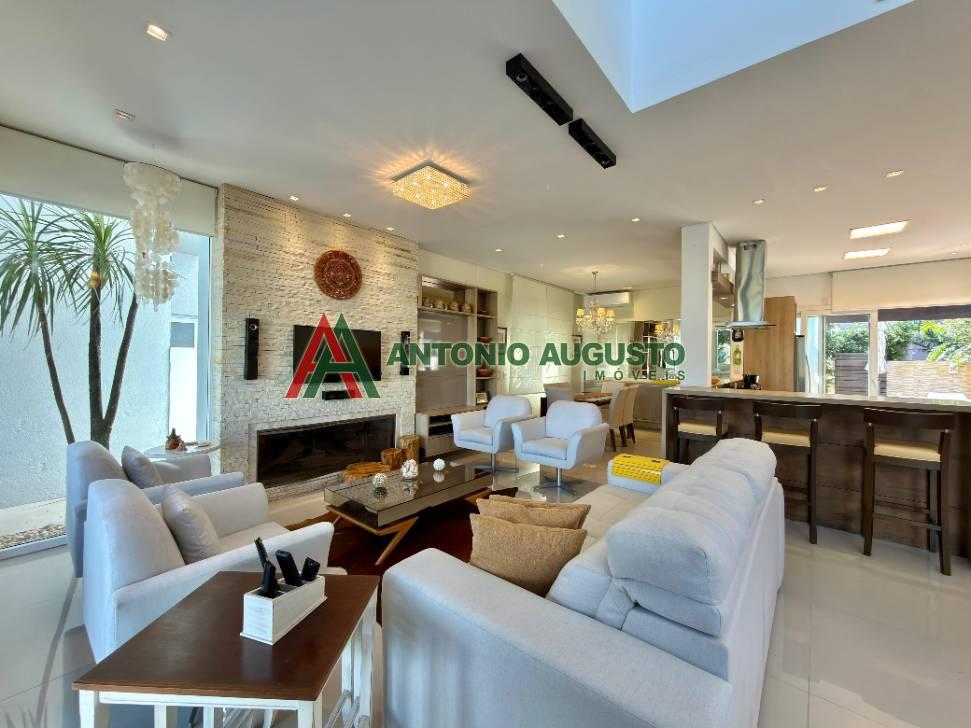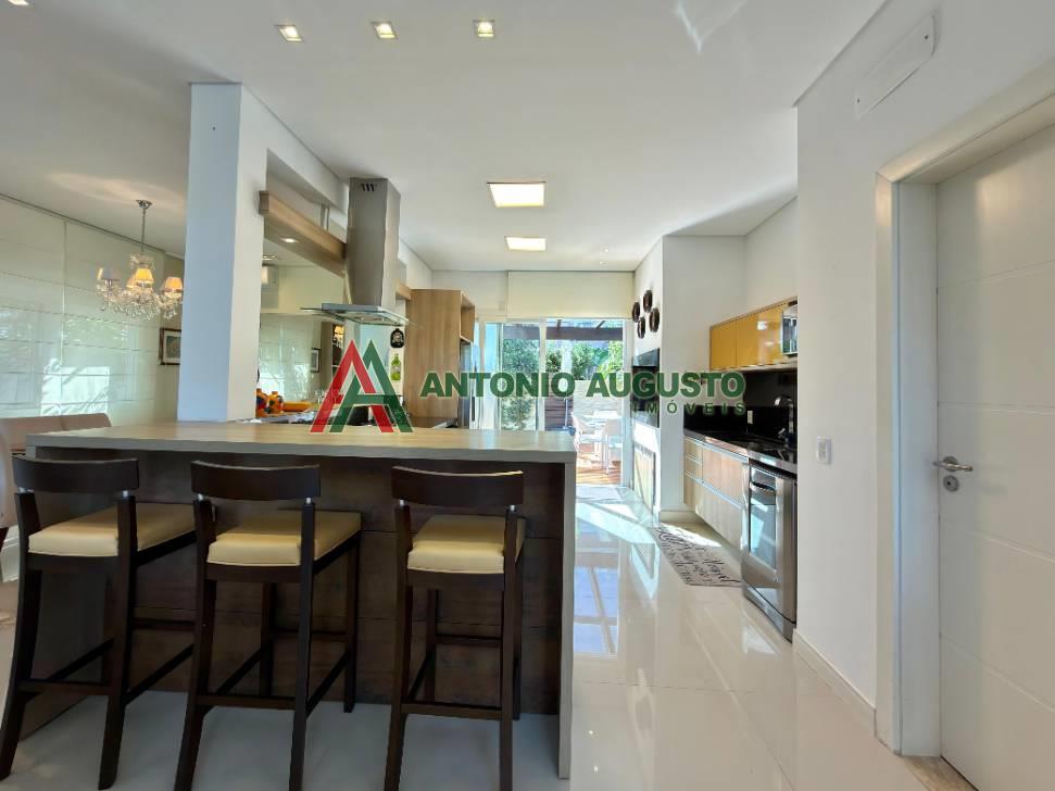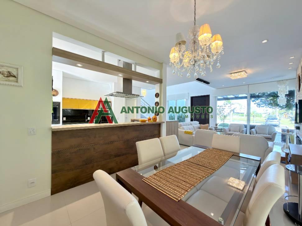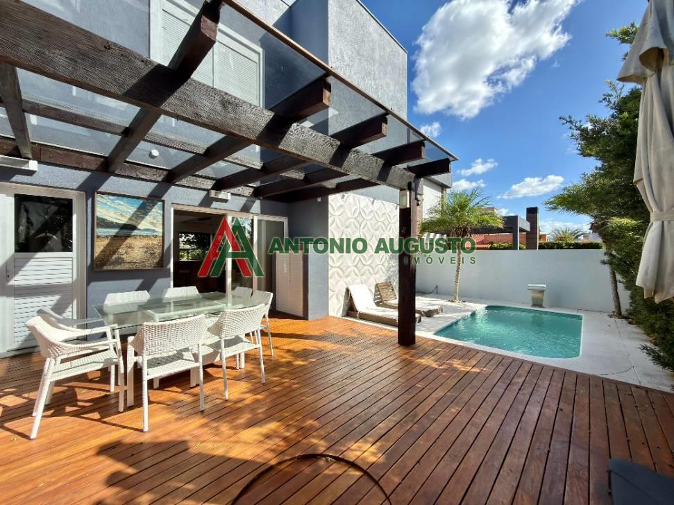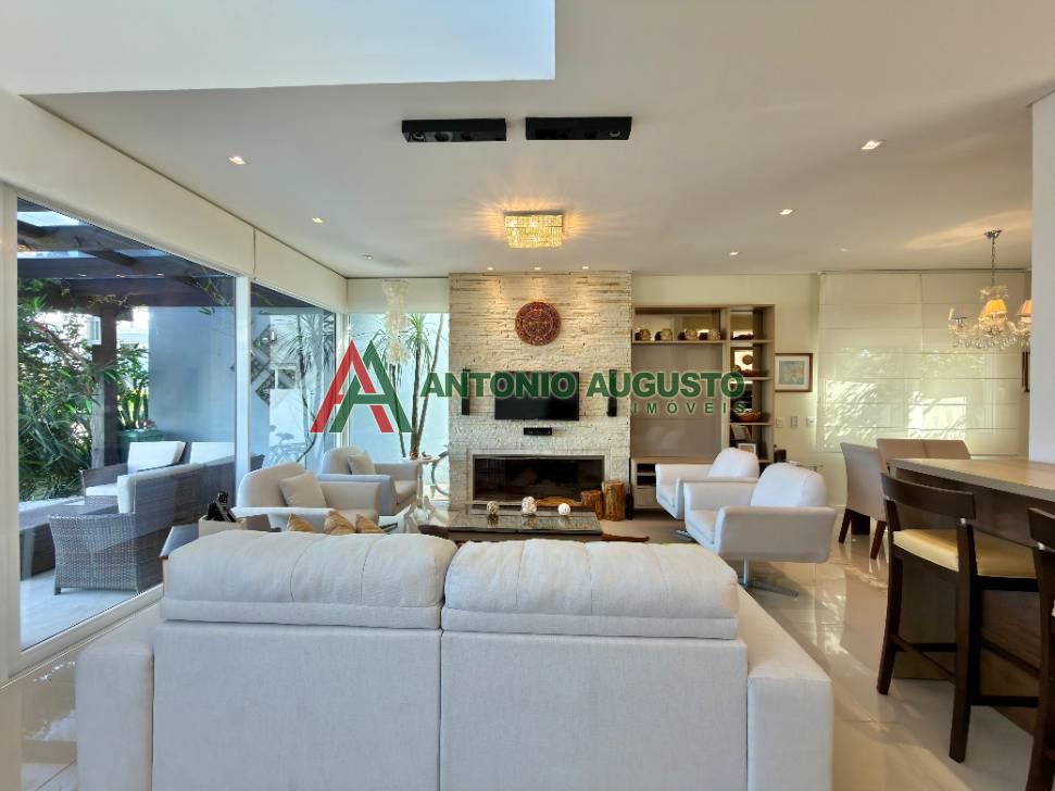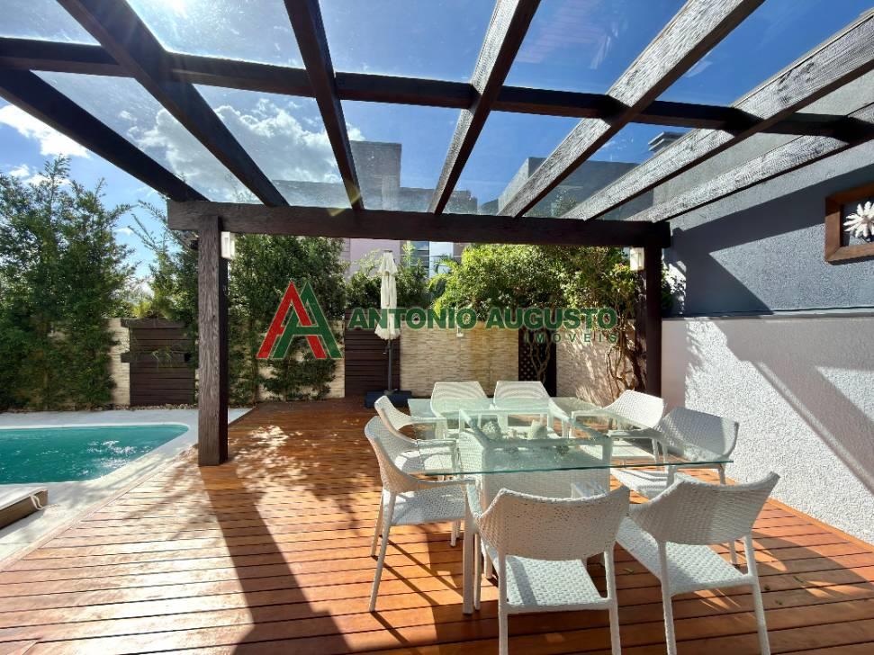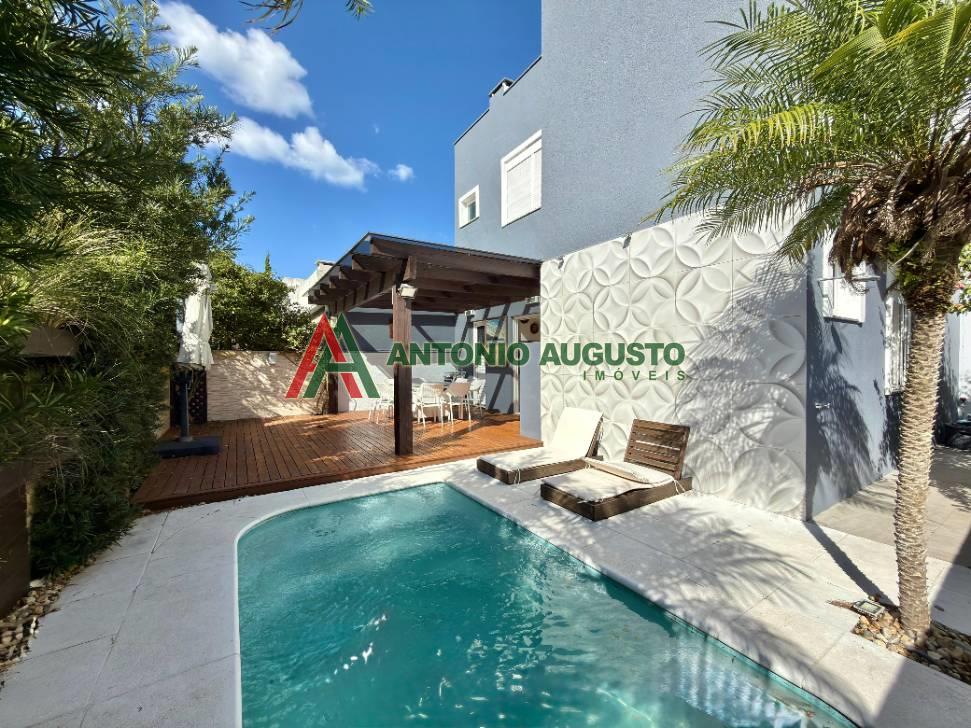 Sobrado com 210m² frente Lago, IPTU 2026 PAGO, composto por 03 Suítes amplas, Completamente mobiliado e decorado, climatizado, Living integrado, lareira a lenha e lavabo, cozinha do tipo americana com espaço gourmet e churrasqueira, excelente iluminação natural, Piscina com Aquecimento, sistema de irrigação no jardim, área externa na frente e nos fundos da casa, condomínio com Infra completa e Portaria 24h.