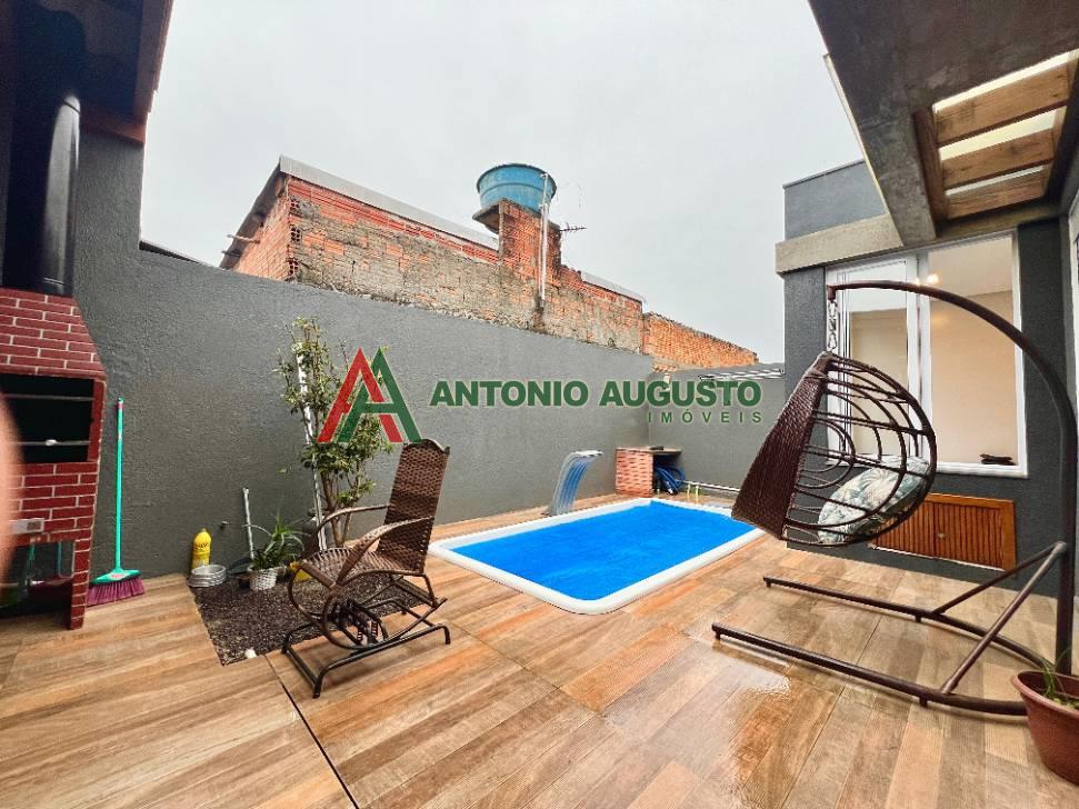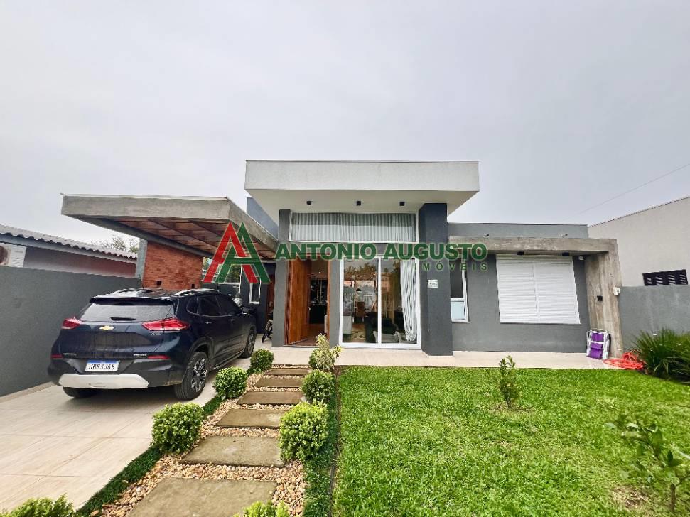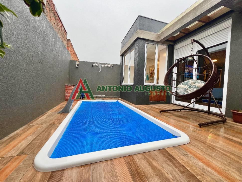 Casa moderna, com 154m2 construido, composto de 2 dormitórios (1 suite com banheira de hidro), living, 2 ambientes, cozinha integrada com churrasqueira, lavanderia, anexo gourmet com churrasqueira, piscina e cozinha auxiliar, localizada em Rainha do Mar , junto a Avenida Diamante.